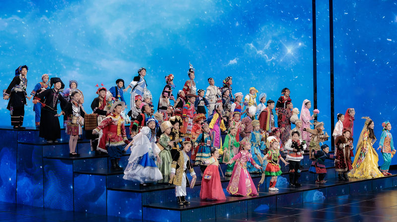 中华民族大家庭的孩子们手牵手,清澈纯真的童声唱出对未来的美好憧憬。