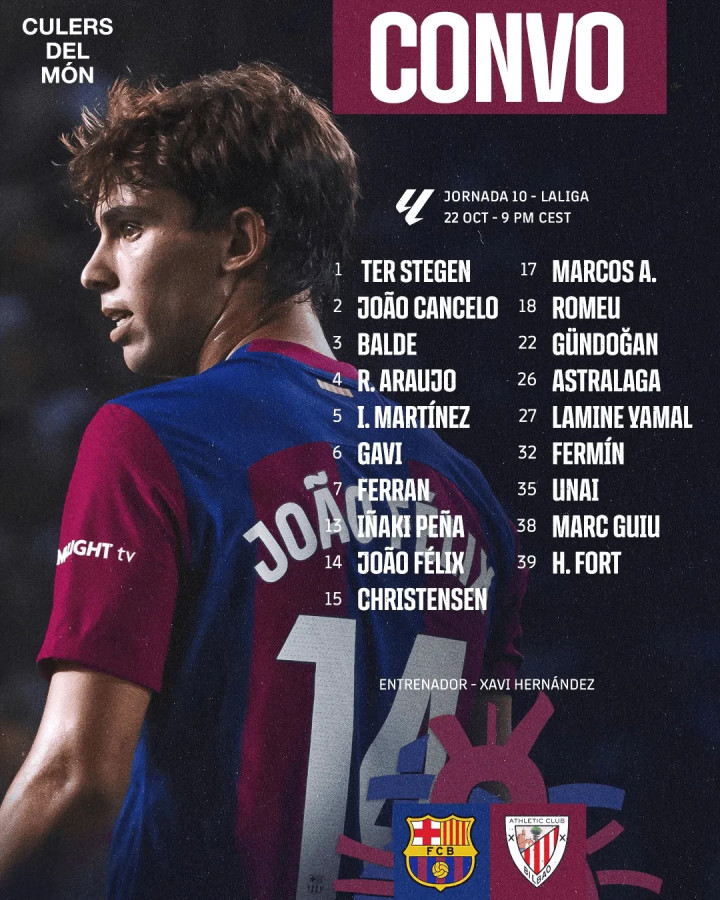 火热的西甲联赛即将迎来一场焦点战,巴塞罗那将在蒙锥克山的路易斯-孔帕斯奥林匹克体育场迎战来势汹涌的毕尔巴鄂竞技。这场比赛也备受瞩目,因为巴萨公布了一份极为惊艳的大名单。