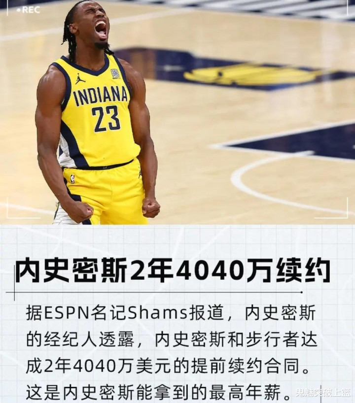 据悉,阿隆内史密斯目前跟步行者的合同还剩2年2200万。随着内史密斯跟步行者签下这份2年4040万美元的提前续约合同,这也就意味着未来四年他都将为步行者打球!
