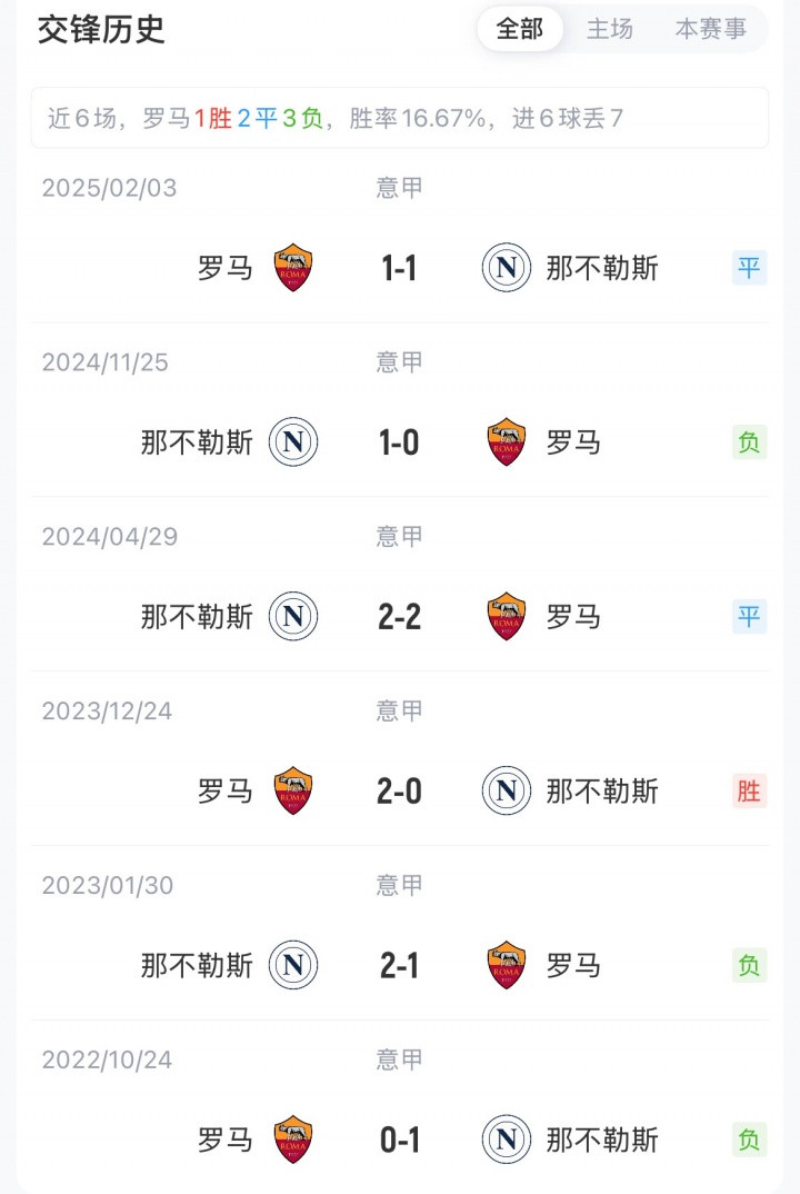 罗马联赛9胜3负积27分,本场取胜可重回榜首。那不勒斯8胜1平3负积25分,他们对罗马近三场不败。