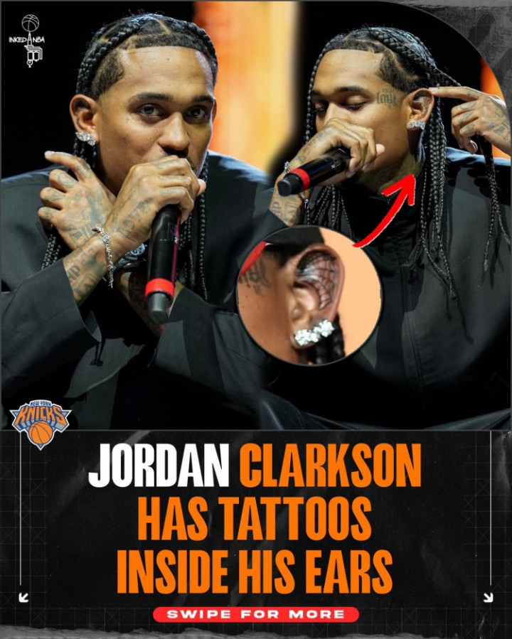 克拉克森在两只耳朵的内部,一侧纹了一朵玫瑰,另一侧纹了蜘蛛网。而从克拉克森的比赛照可以推测,这是他在今年休赛期才新添的纹身。
