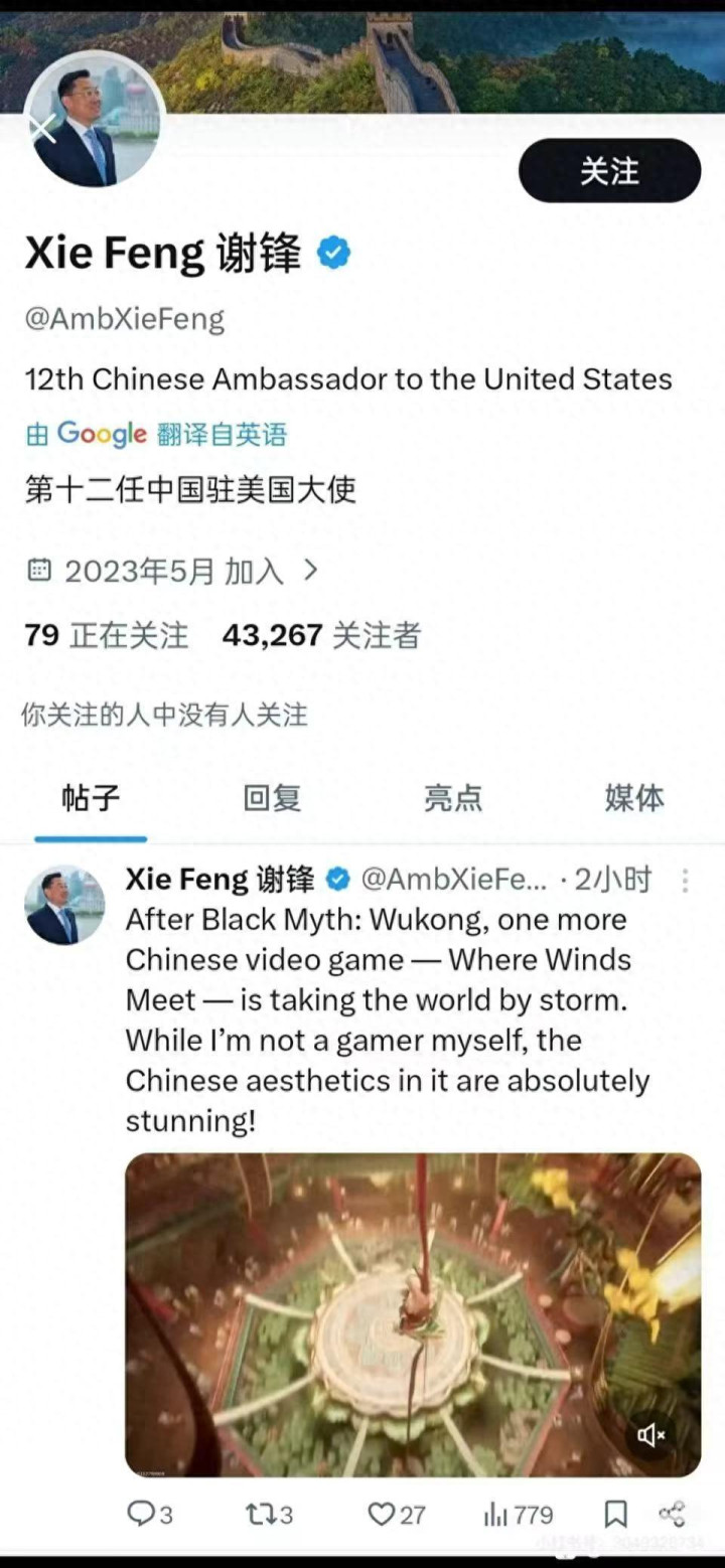 不知道各位网友是否发现,近段时间越来越多的国产游戏,在全球范围内收获了海量玩家认可?特别是在文化输出方面,起到了越来越大的作用,最近网易旗下游戏《燕云十六声》便在出海后,获得了驻美、驻俄大使馆外交官的发文点赞,引发了网友们的广泛关注。